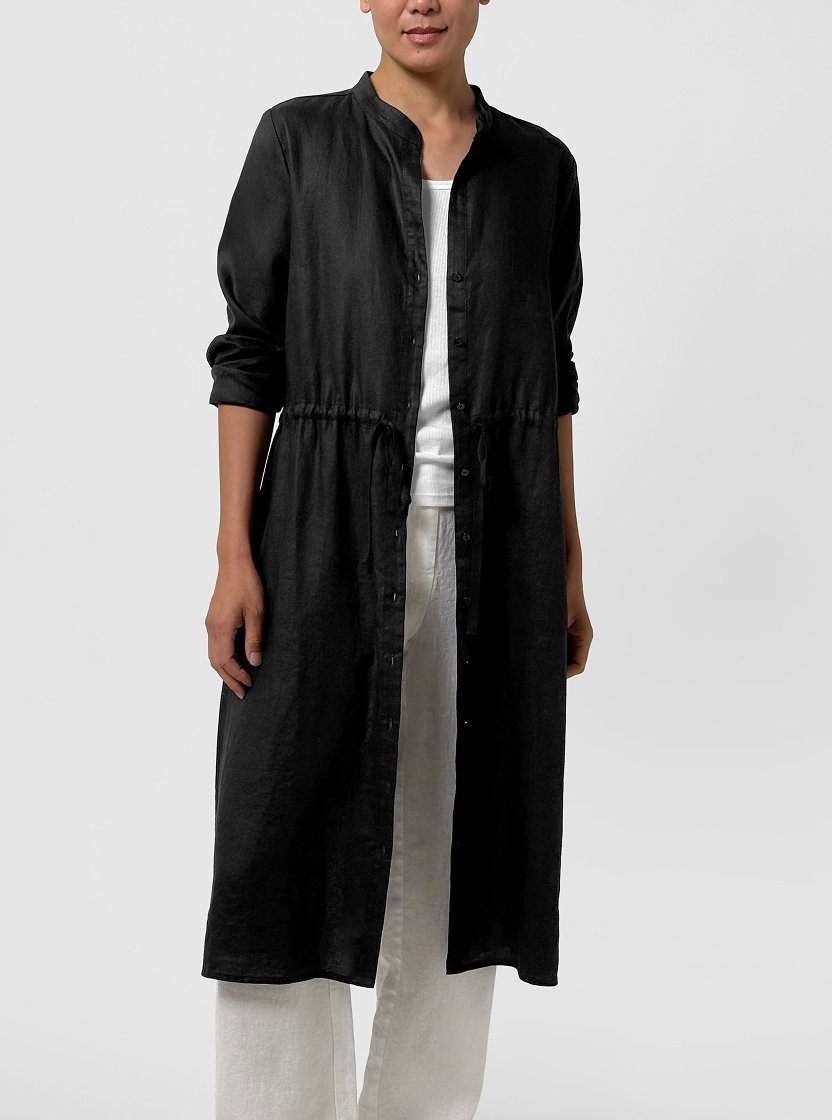 Organic Linen Band Collar Dress, S6RII-D5444M, Black, $258. Fair Trade Certified™.