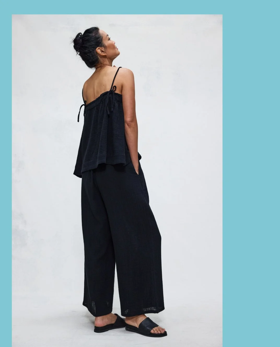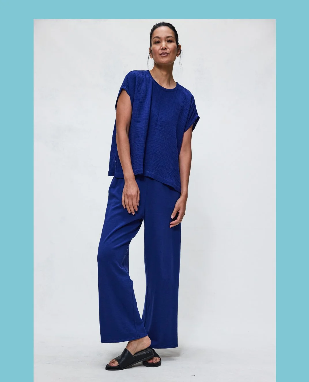 Organic Linen Wide-Leg Pant, S6RII-P4689M, Ink, $178. Fair Trade Certified™. bluesign® APPROVED.