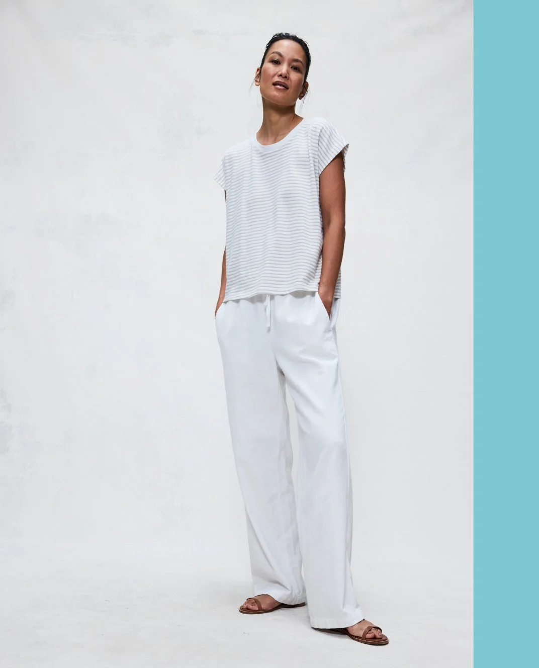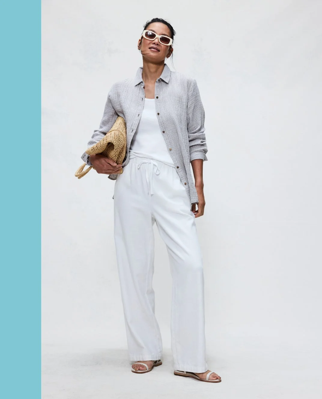 Breezy organic cotton for the downtime you deserve. Days spent on sun-faded decks and soft sandy beaches. Go ahead, swap your phone for a good book—and just relax.