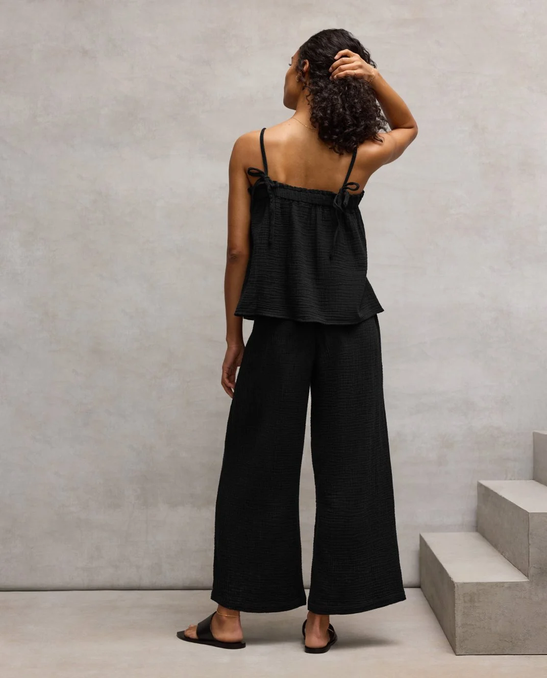 Organic Cotton Lofty Gauze Cami, S6GBA-U4415M, Black, $128. Fair Trade Certified™. bluesign® APPROVED.