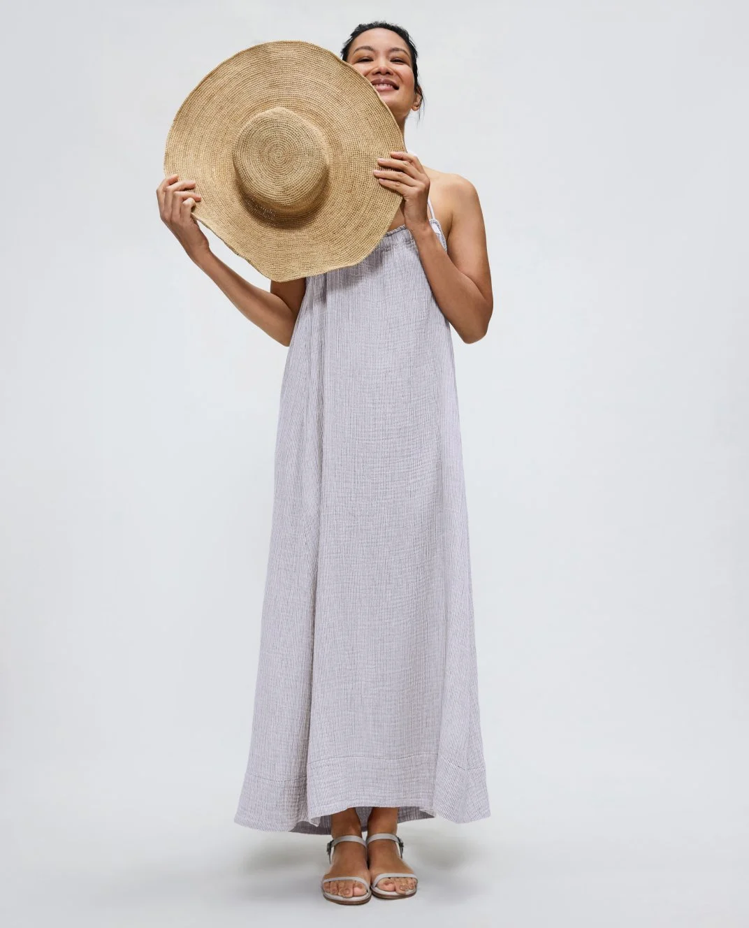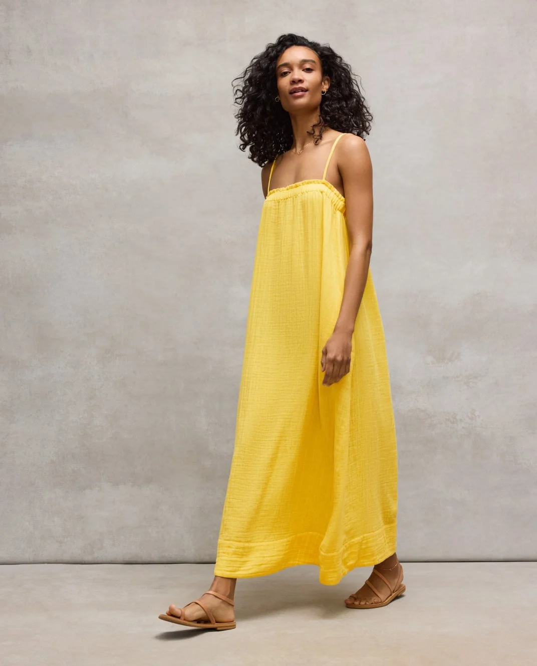 Striped Organic Cotton Gauze Cami Dress, S6GBO-D5452M, Soleil, $188. Fair Trade Certified™.