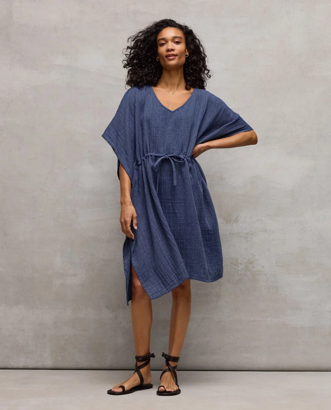 Striped Organic Cotton Gauze Caftan, S6GBO-N1591M, Deep Dive, $158. Fair Trade Certified™.